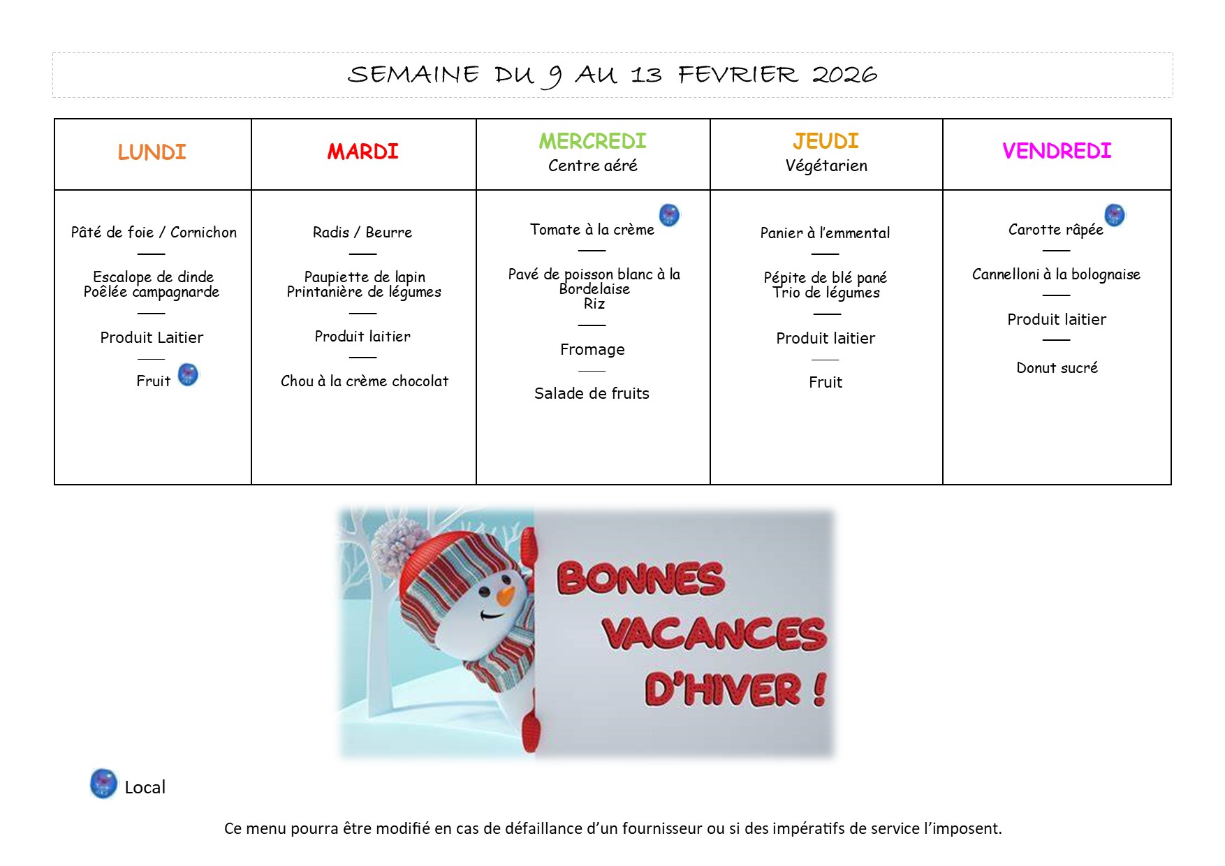 MENU CANTINE 2026 – SEMAINE 7